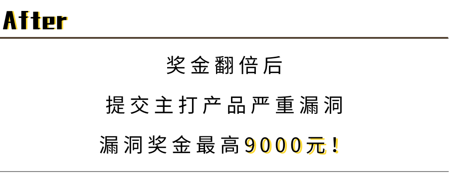 2、参与奖金双倍的漏洞,不可与其他漏洞奖励活动叠加享受奖励权益;