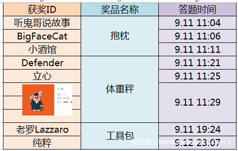 5,活动截止日期9月15号,中奖名单及题目writeup将于9月16日公布。
