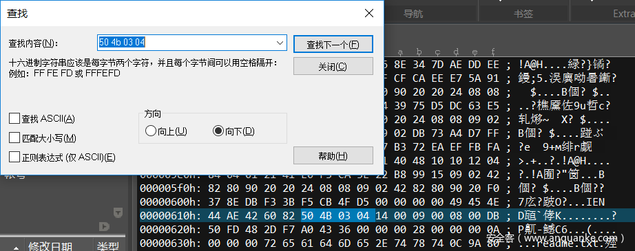 什么鬼,说明这个方法不是正确的打开方式。用UE十六进制编辑器打开,查找一下zip的文件头504B0304