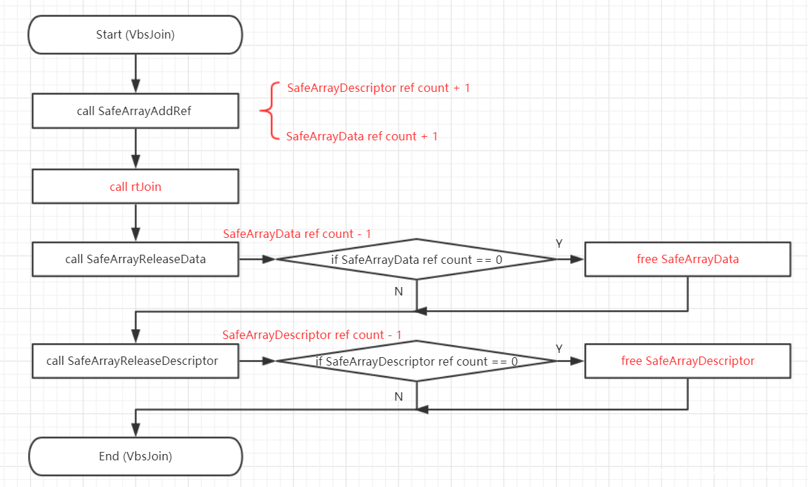 故事源自于BinDiff,当时我想比较下微软在5月份和6月份的vbscript.dll中函数做了哪些改动(vbscript.dll是包含VBScript引擎相关API函数的一个模块)。我发现微软在SafeArrayAddRef、SafeArrayReleaseData以及SafeArrayReleaseDescriptor这几个函数上做了改动。