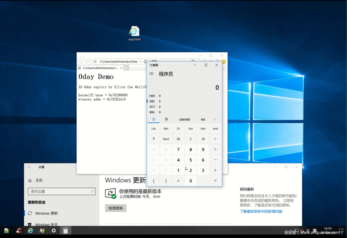 去年6月份,我向微软报告了IE浏览器中的一个UAF(释放后重用)漏洞,漏洞被官方定位严重级别,编号为CVE-2019-1208,微软在9月份的周二补丁日修复了这个漏洞。我通过BinDiff(一款二进制代码分析工具)发现了这个缺陷,编写了一个PoC来演示如何在Windows 10 RS5系统中利用该漏洞。