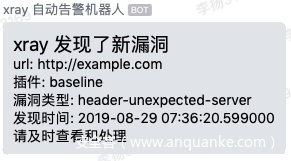 对于安全工程师来说,扫描器发现了漏洞能第一时间给出告警是非常重要的,因为安全工程师使用的是 xray 的基础爬虫模式,爬虫一直在爬也不会一直人工刷新和查看漏洞报告,也有可能是使用的被动代理模式,让测试人员挂扫描器代理然后访问各个业务页面,但是不知道什么时间测试人员才开始和完成测试,也有可能是日志扫描模式,导入日志使用脚本进行 url 扫描,不知道什么时间才能重放完成。