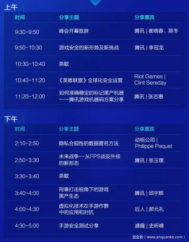 今年的峰会将继续和从业者一起洞见游戏安全的最新动态和趋势,也会探讨在全球化运营大背景下的游戏安全运营方式。能够零距离和全球顶级游戏厂商安全大咖交流的机会可不多,安全行业从业者或者对游戏安全感兴趣的你,一定不能错过这次机会!