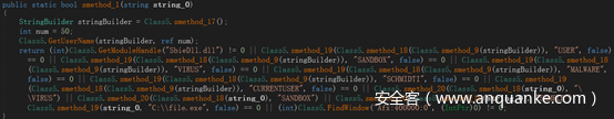 通过dump在内存中的恶意模块,深入分析之后发现其首先做了多种躲避查杀的检测: