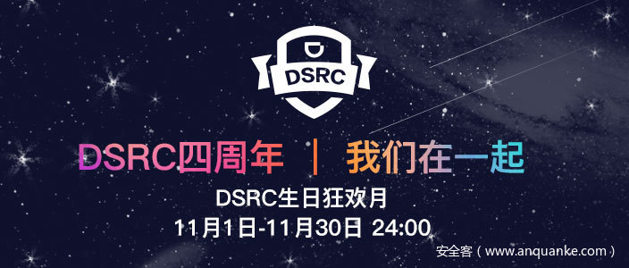 时光在寸寸流逝的同时我们也在一点点成长,感谢各位白帽英雄们做出的贡献。你的陪伴,我的历练,你的支持,我的坚持。在今天,持续时间最长的活动又来啦!DSRC四周岁生日狂欢月正式开始~Happy Birthday~
