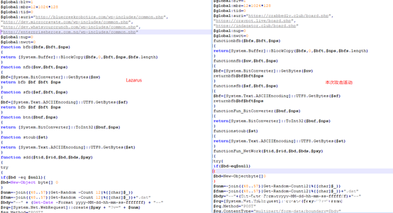 本次攻击所使用的PowerShell脚本和Lazarus APT组织历史使用的脚本基本一致: