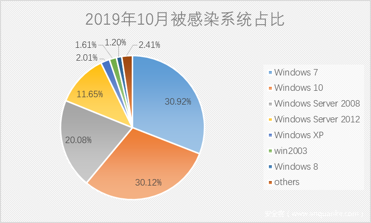 至于系统感染情况,360安全大脑监测发现,本月居前三的系统仍是Windows 7、Windows 10和Windows Server 2008。随着Windows 10逐渐成为主流,其受攻击占比也上涨了5%左右,在可见的将来,渐成“攻击靶心”的Win10用户需要提高警惕。