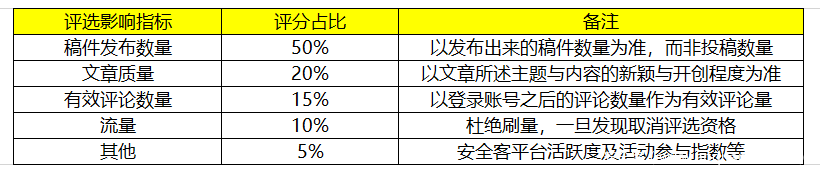 评选影响指标和评分将根据实际情况逐步完善,具体以奖励月公示为准,最终解释权归安全客所有