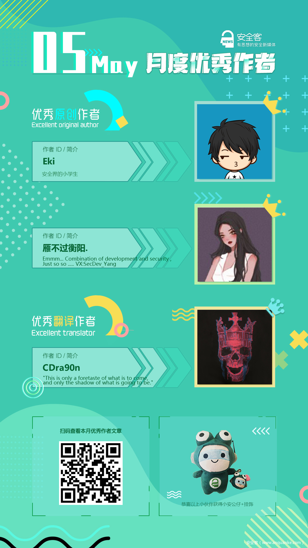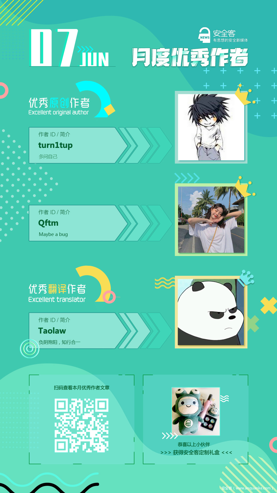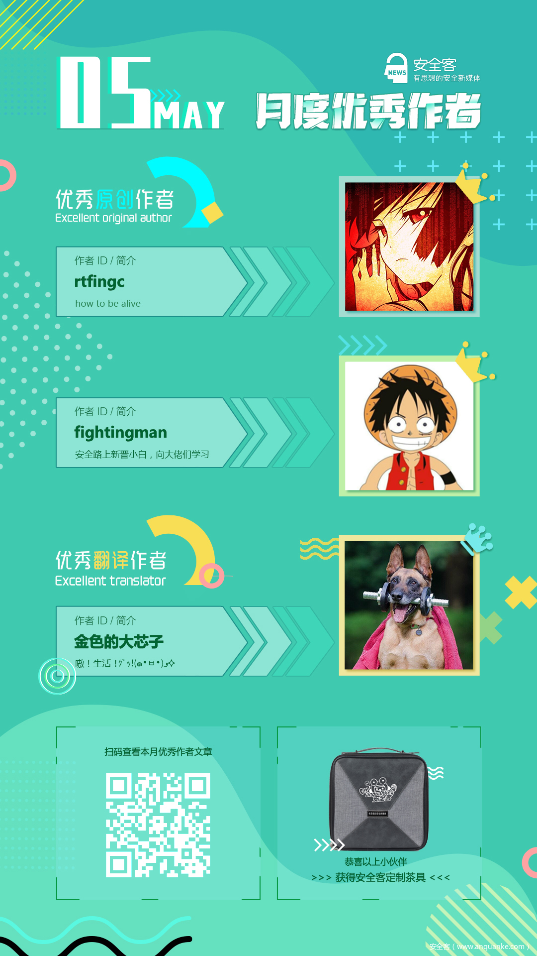 之前因疫情原因我们尚未对1月~4月的作者进行公布。今天,我们安全客月度作者评选现在重新正式启动啦 ~