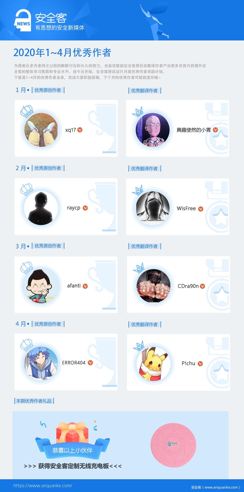 1~4月月度优秀作者公布