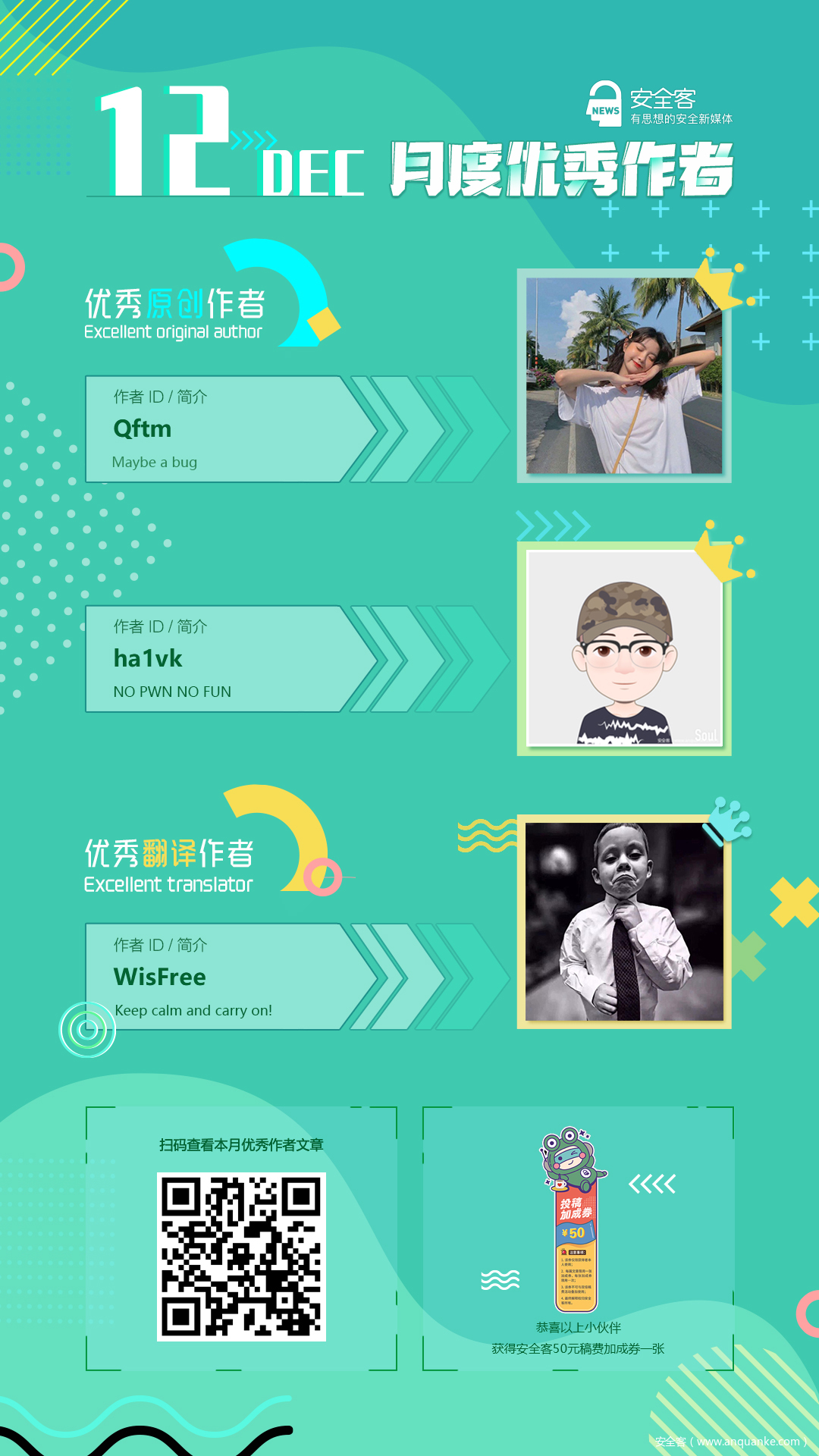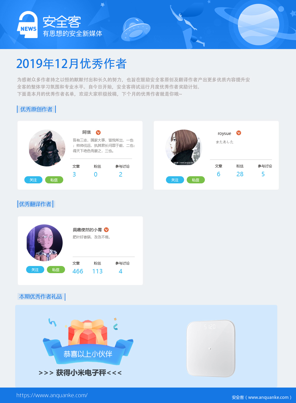 12月月度优秀作者公布