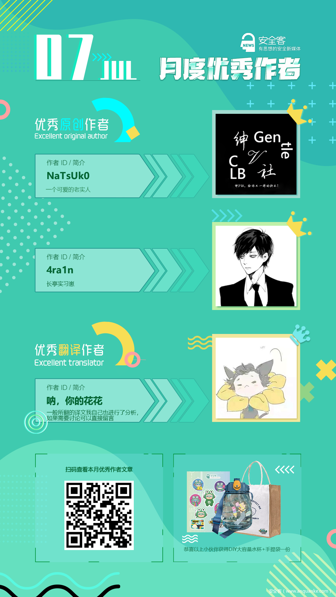 7月月度优秀作者公布