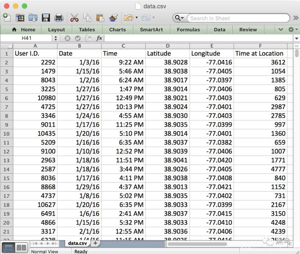 此外,位置数据公司可以使用从GPS传感器,蓝牙信标和其他来源获得的数据。当这些数据源源不断的流入位置数据公司的后台处理后,那么结果便会成为下面这个样子。