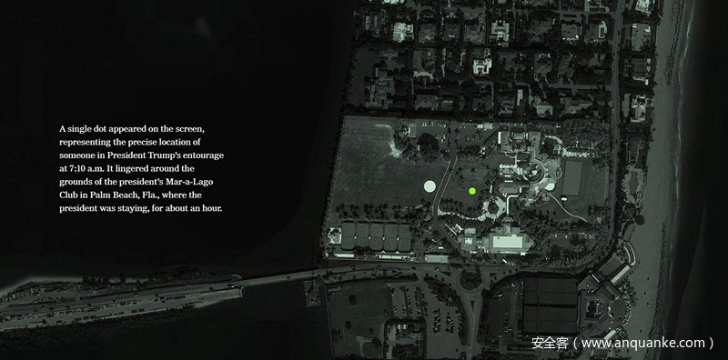 近日,《纽约时报》记者展开了一个名为“追踪特朗普”的行动,在公开信息的协助下,他们仅用几分钟,通过追踪特朗普随行人员的位置数据,精准掌握了总统的一天活动行踪。