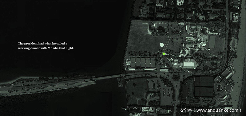 伴随着绿点的移动,总统行踪也有了变化。9点24分,特朗普来到当地高尔夫俱乐部,与日本首相安倍晋三打了高尔夫。