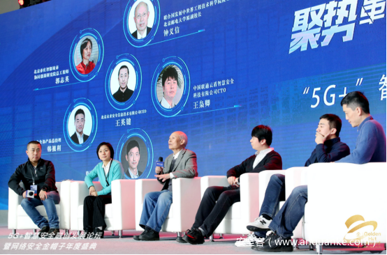 在圆桌论坛环节,北京未来安全信息技术有限公司CEO王英键、联合国发展中世界工程技术科学院院士 北京邮电大学原副校长钟义信、北京亦庄智能城市协同创新研究院总工程师郭志英、腾讯安全云鼎实验室/腾讯云平台安全负责人董志强(Killer)和百度安全部副总经理沈鹏飞围绕着 “ ‘5G+’智慧安全融创发展” 的主题,分享了“5G+” 为企业融合创新发展在不同行业和场景带来的变化和趋势,从技术和应用等不同角度分析了现有机遇和实际挑战。