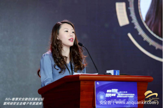 接下来,工信部原电子信息中心副主任刘献军以“ ‘5G+’为企业融合创新发展提供了新通道”为题带来演讲,她认为网络安全是数字化转型的重要驱动力量,2019年商用5G牌照的发放,积极推进了网络建设和发展。这必将生成新一轮变革,未来五年间5G直接创造就业岗位超过300w个。发挥信息化对经济社会的推进作用,2020年预计将正式大规模建设。三点发展建议:强化风险意识,提升网络安全保障水平;加强能力建设,全面提升网络安全水平;重视自主创新,企业重视网络安全关键技术研发。