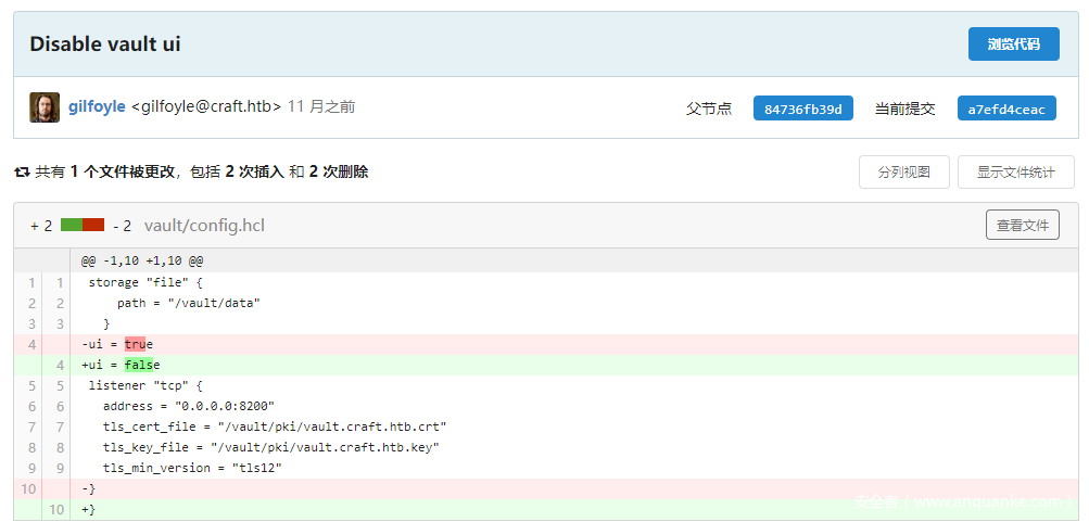 继续查看craft-infra项目的代码,留意到vault这个应用上面渗透的过程中一直没见到,可能是一个特殊用途的应用,查看项目的commit log,可以发现一些端倪。