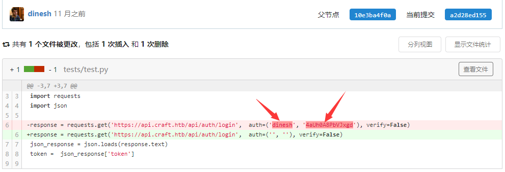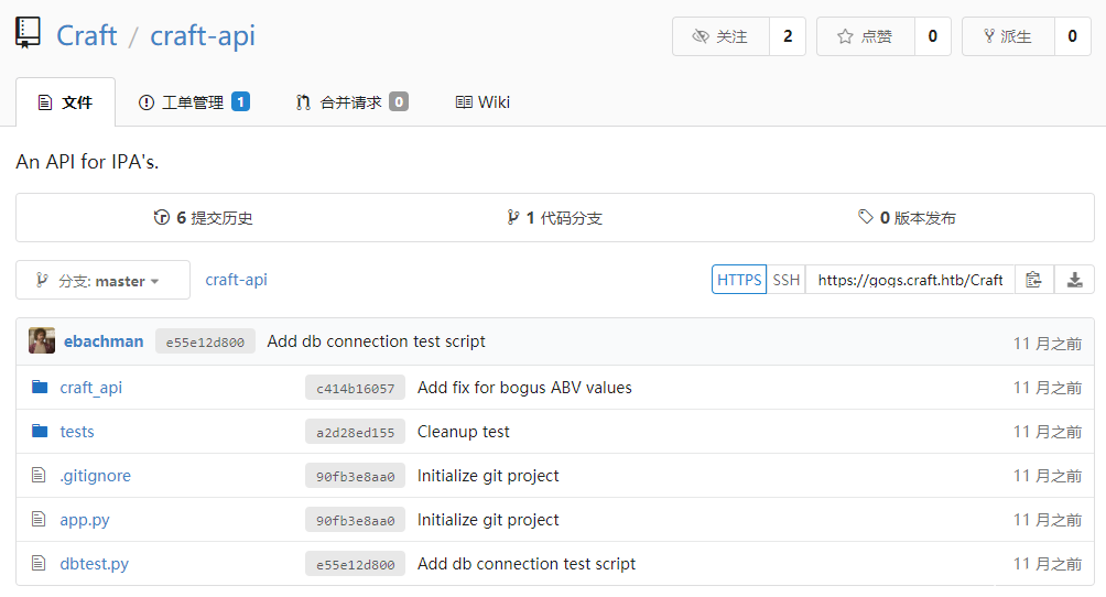 在 https://gogs.craft.htb/Craft/craft-api 有craft-api的项目