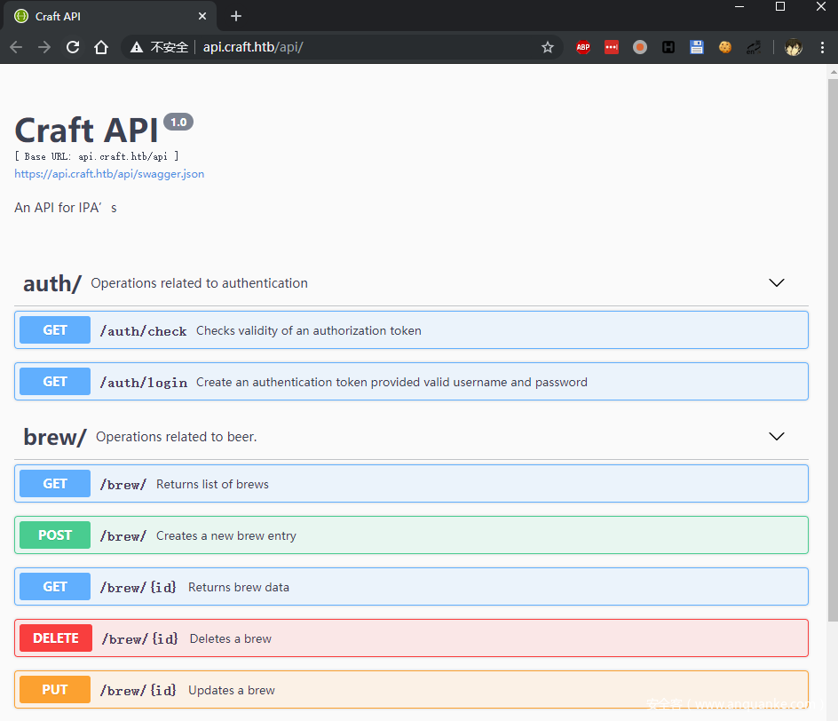 访问 https://api.craft.htb/api/ ,看英文介绍,貌似是一个管理啤酒生产的系统。