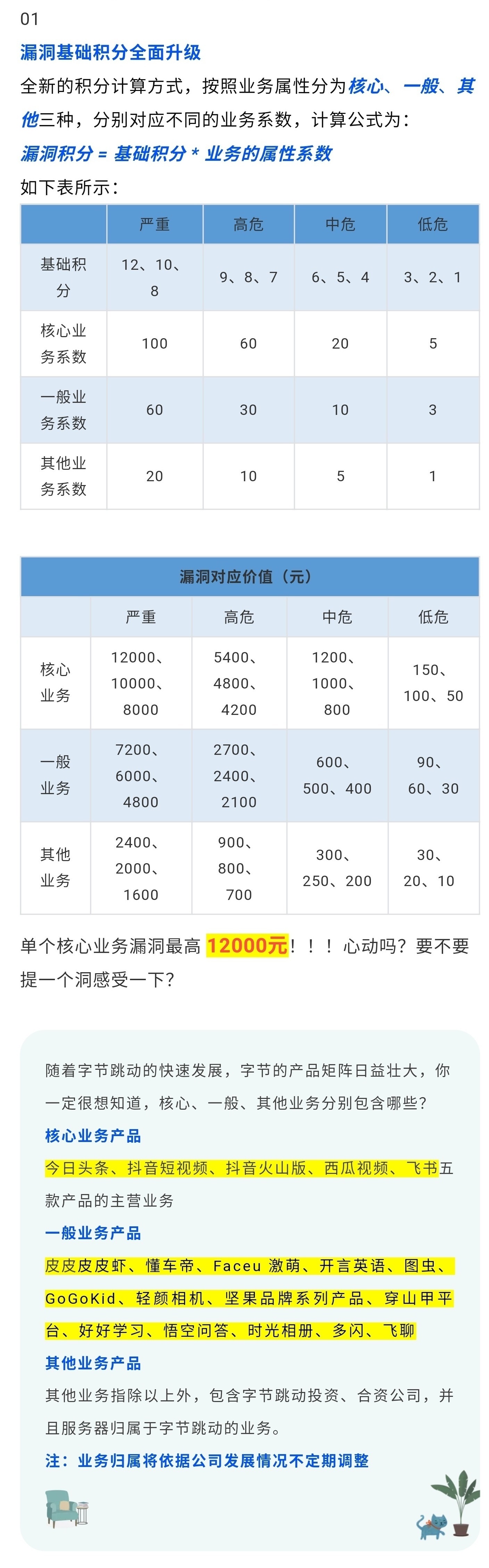 ByteSRC漏洞价值又又又……又加码!新版评分规则出炉!
