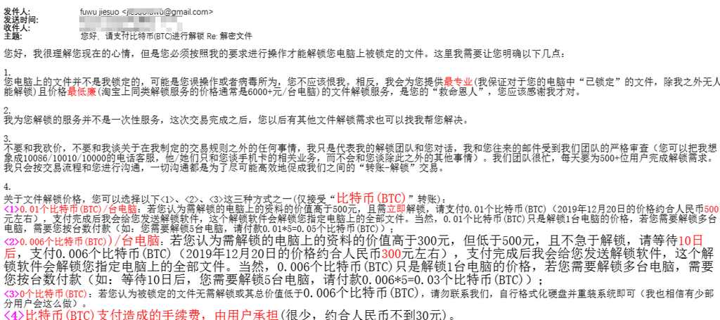 图4. “已锁定”黑客邮件回复