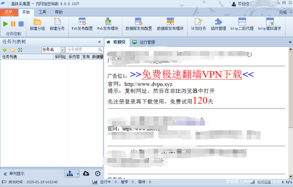 另外,在2020年1月中旬,360安全大脑独家监测到“已锁定”中文勒索病毒。该病毒通过一款“高铁采集器”的软件进行推广,诱导用户下载带有勒索病毒的VPN程序。在配置VPN程序过程中,病毒作者会刻意引导用户去关闭360安全卫士的文档防护功能,并会在被加密的文件名后添加“已锁定”字样,同时为每个文档生成一份文件锁定说明。