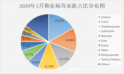 图1. 2020年1月勒索病毒家族占比分布图