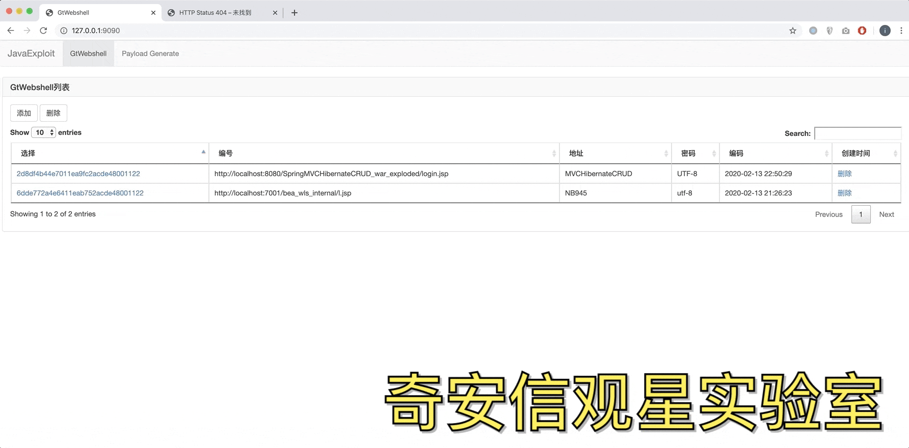 本文技术的具体实现已集成到实验室内部的 Webshell 管理工具中,下面的动态图片演示了在 SpringMvc 环境中向内存注入一个自定义 URL 的 Webshell 操作。