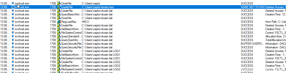 如果我们运行ProcMon,启用”boot logging”功能,可以看到用户登录主机时ProfSvc服务会执行比较有趣的一个操作。