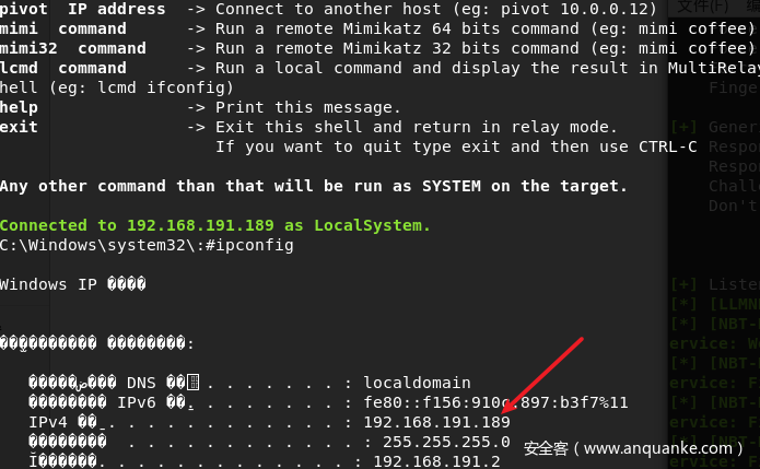 可以导入列表,这里演示一个攻击目标192.168.191.189,利用Responder的MultiRelay模块获取shell,如果成功,直接反弹192.168.191.189的shell