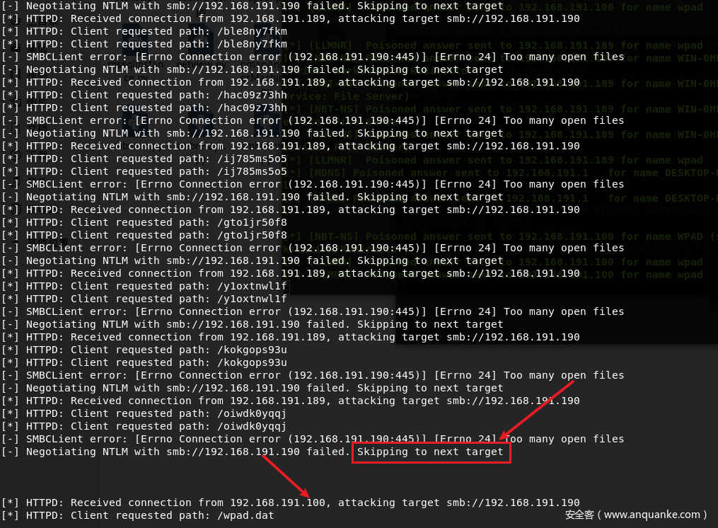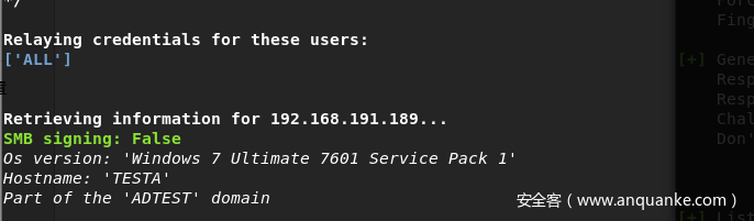 2、sudo python MultiRelay.py -t 192.168.191.189 -u ALL