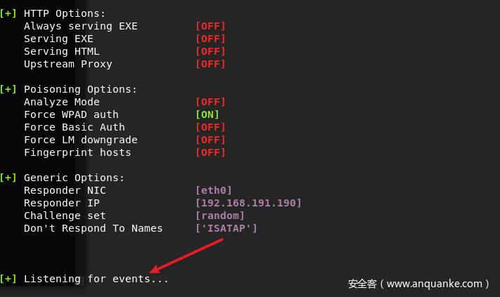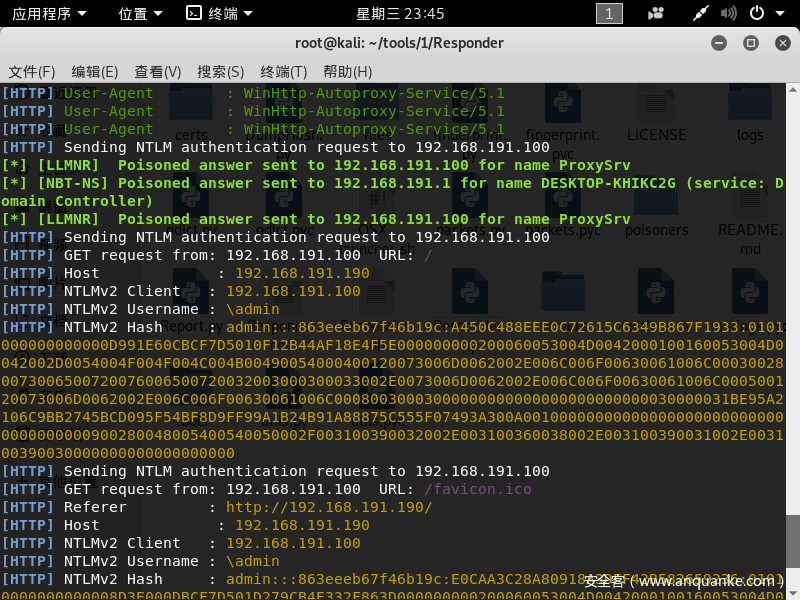 1、攻击机执行 python Responder.py -I eth0 -r -d –w
