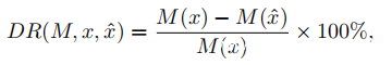 其中x是原始特征x的对抗示例,M是用于检索的度量,例如mAP。下降率通过测量检索系统的性能退化来表征攻击性能。下降率越高,攻击越成功。