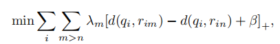 其中qi是第i个查询的蒸馏模型的特征,rim是第i个查询的子集中的第m个相似参考的特征,λm是确保顶级参考更重要的折扣因子,β是避免所有要素落入单个点的余量。