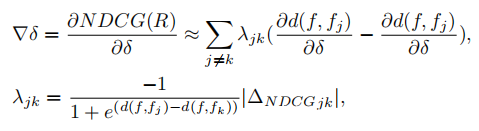 其中|∆NDCGij|是NDCG度量的变化,如果交换第i和第j个引用的位置的话。