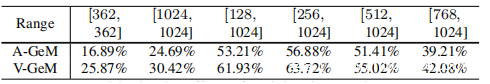 如前所述,检索系统可以接受各种尺寸的输入图像,这激发了研究攻击系统时调整大小的效果。定量结果显示在上表。首先将调整大小比例设置为固定的362×362和1024×1024,考虑到362×362是用于训练检索模型的比例。 A-GeM和V-GeM的下降率低于多尺度随机调整大小方法的一半。最后,评估了范围对多尺度随机大小调整的影响,并观察到范围过大或过窄都会损害攻击性能。