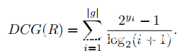 由于列表通常太大而无法直接处理,因此重复使用以上采用的界标,并通过每次从每个界标中抽取参考来构造具有适当大小的排名列表的子集。将集群中心的反向排名列表视为理想的排名序列,并销毁标准化折扣累积增量(NDCG)度量,因为它是最适合信息检索的最经典度量。 NDCG是多级度量,旨在根据实例在结果列表中的位置来度量实例的收益。增益是从列表的顶部到底部累积的,较低级别的参考增益将被打折扣。给定集合S及其评级的任意集合g {yi} | g | i = 1,DCG定义如下: