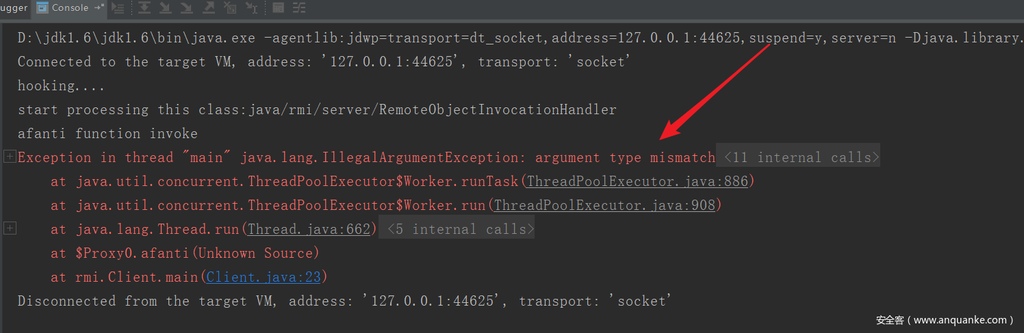 如果正常客户端调用afanti方法,运行就是如下结果: