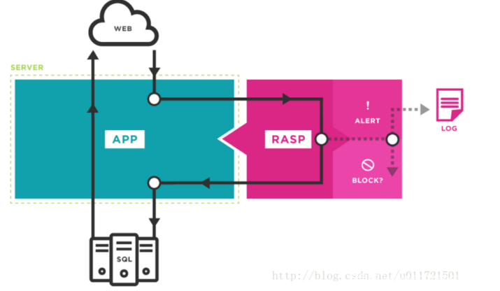 具体Rasp可以用下图来表示,RASP的知识,网上资料很多,这里就不赘述了: