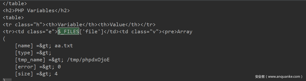 通过上面的介绍,服务器上存储的临时文件名是随机的,这就很难获取其真实的文件名。不过,如果目标网站上存在phpinfo,则可以通过phpinfo来获取临时文件名,进而进行包含。