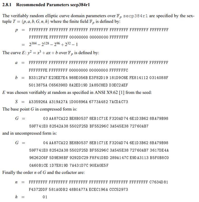 在parameters中,可以通过指定“命名曲线”的方式来指定椭圆曲线参数(隐式指定)。