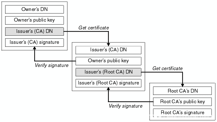 证书的签发者 (issuer) 和证书主体 (subject) 分别标识了签发证书的CA实体和证书持有者实体。证书主体公钥信息(subjectPublicKeyInfo)给出了证书所绑定的加密算法和公钥。其ASN.1描述如下: