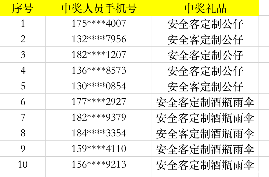 中奖名单公布