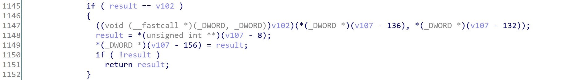 1147行是一个函数调用,v102的值分析后得出是sub_21ef4地址,其功能也很简单: