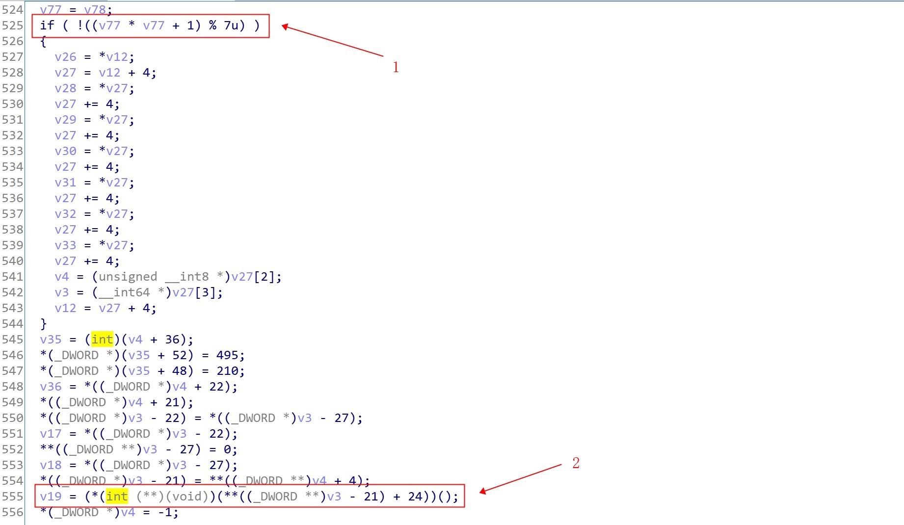 并没有直接找到后面引用到javaVM指针的代码,但是上图2处看结构很可能是调用vm->getEnv,为了进一步优化f5代码和变量之间关系,我们需要进一步处理。可以注意到其中一些分支其实是不会执行的,如上图中1处分支的条件,从数学角度分析该条件不会成立,但ida并不能识别出来,所以我们在符号执行的时候需要特殊处理,去掉这些不会执行的相关块。