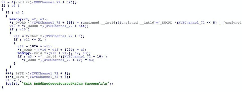 并在 RsMdEncQueueSourcePktCng 函数中 XVEChannel_72 + 9 将做一次自增。