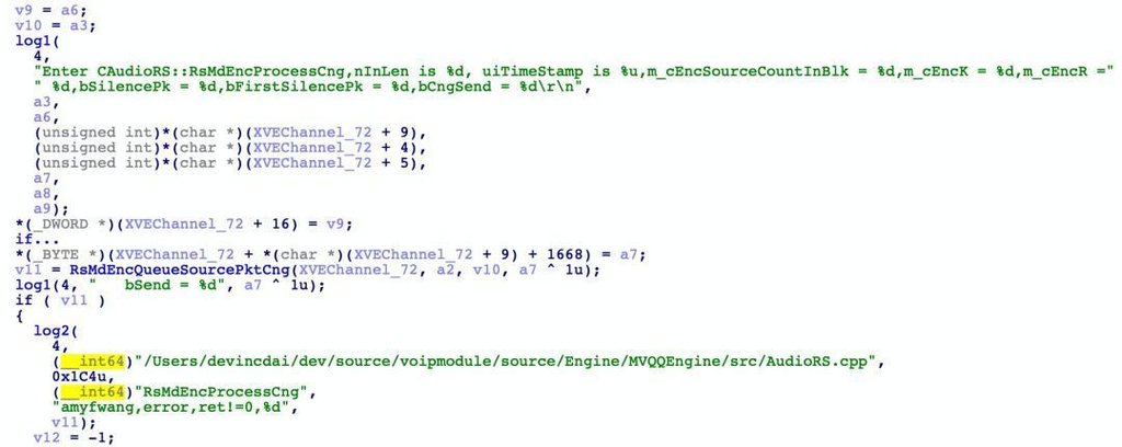 在完成了对 FaceTime 的一系列漏洞挖掘与研究后,我们决定对微信的音视频通信做一些分析。经分析后发现,当微信语音通话连接建立成功之后,微信客户端将解析远端发来的网络报文并还原成多媒体流。在还原解析的过程中,如果处理远端数据的代码存在问题时就会形成一个远程的攻击面。